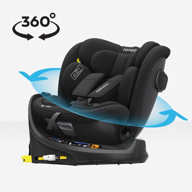 Fotelik Totico Travi posiada intuicyjny mechanizm obrotowy 360°, który umożliwia płynne obracanie siedziska w dowolnym kierunku. Dzięki temu codzienne zapinanie dziecka staje się szybkie, wygodne i w pełni bezpieczne.