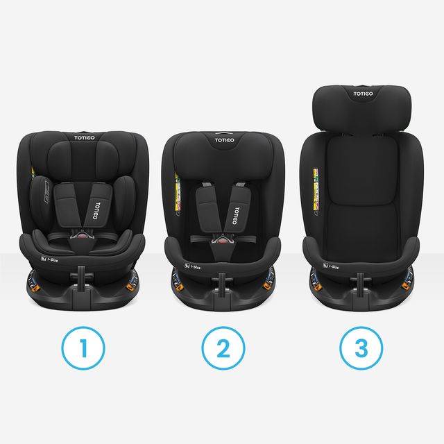 • Łatwe przełączanie kierunku jazdy – fotelik pozwala w kilka sekund zmienić pozycję z tyłem do kierunku jazdy (RWF) na przodem (FWF), gdy dziecko osiągnie odpowiedni wzrost.